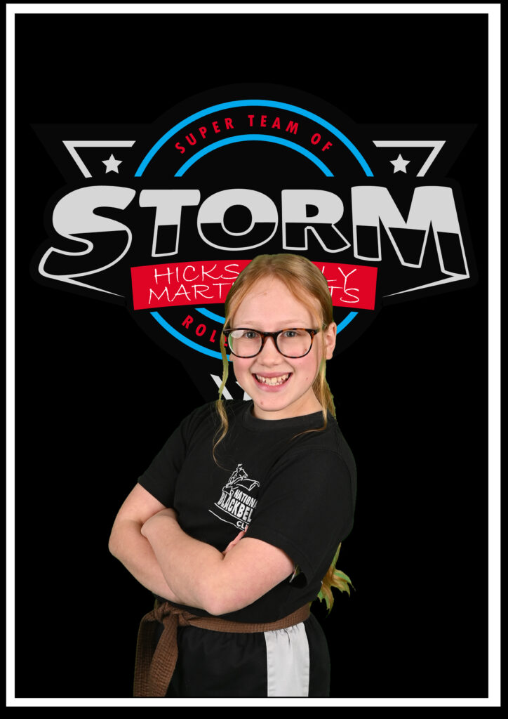 Miss Mollie Godfrey has been training with Hicks Family Martial Arts since she was 6 years old. She has worked her way through the children’s belts, then the adults belt, helped as part of the storm team then being promoted to junior Instructor in 2019 and promoted again to Instructor in 2021. She is currently working towards he 3rd Degree Black Belt.